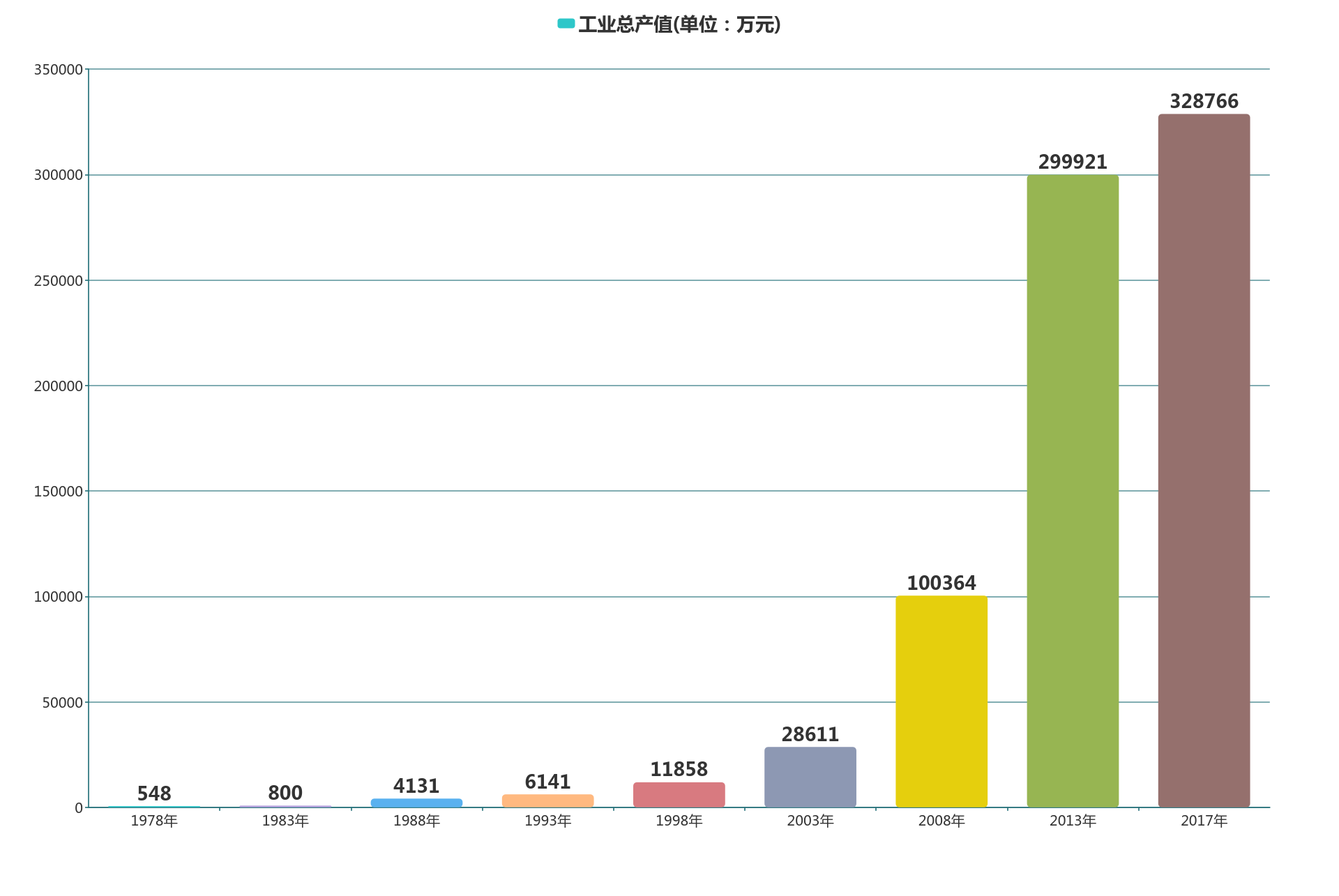 十一五末,全县工业总产值为12.6亿元,工业增加值为3.1亿元,对GDP的贡献率为15.7%,工业税收5096万元,财税贡献29.6%;十二五末,全县工业总产值为28.8亿元,工业增加值为28.8亿元,对GDP的贡献率为29%,工业税收1.1亿元,财税贡献34.6%;十三五中期2017年实现全部工业总产值32.9亿元,同比增长21.53%;实现全部工业增加值14.6亿元,可比增长18.9%,超出州下达目标8%的10.9个百分点;其中规模以上工业增加值完成6.7亿元,可比增长30.5%,增速居全州第一,工业占GDP比重达27.7%。非电力工业固定资产投资完成21699万元,同比增长67.99%。