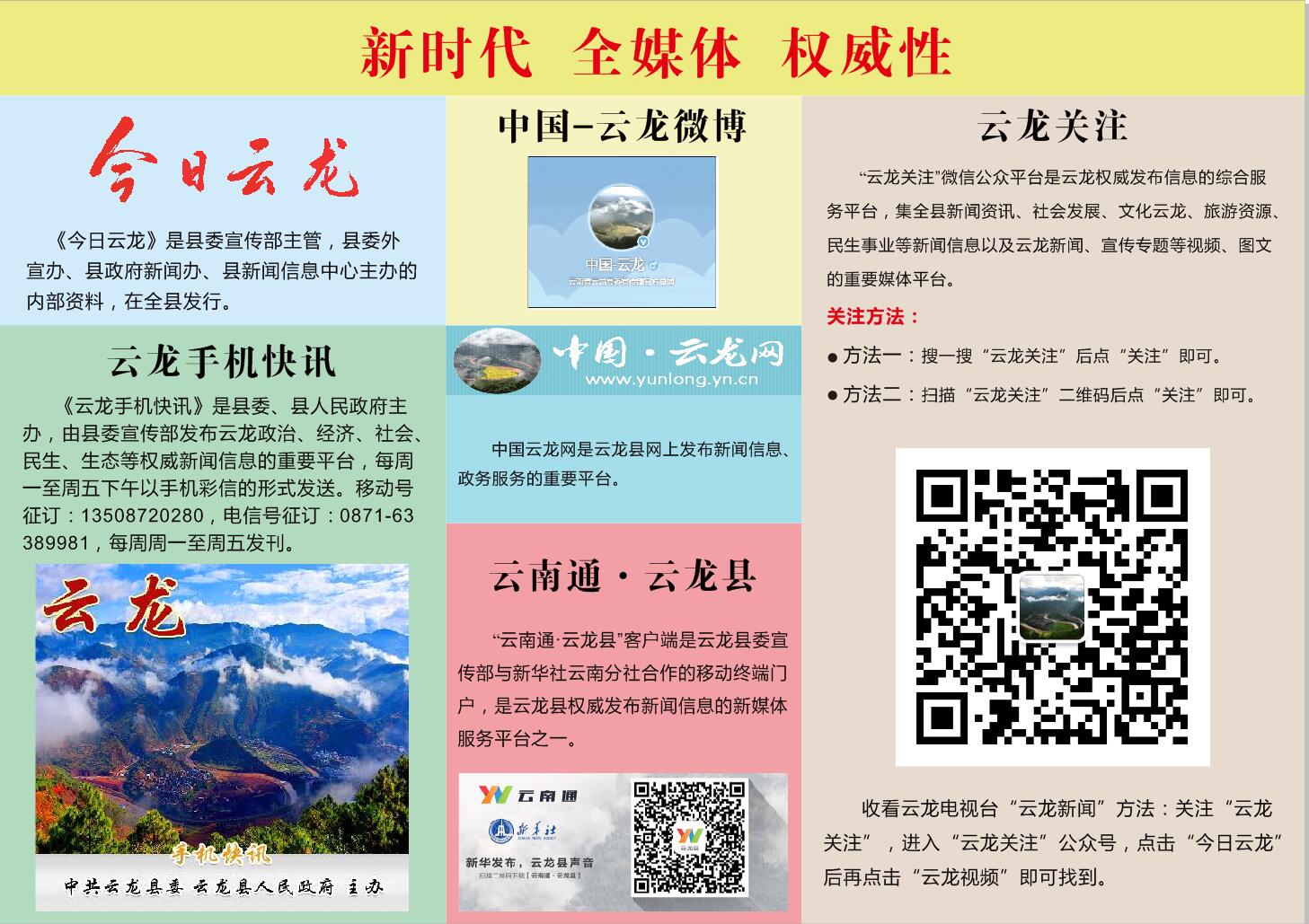 坚持抓实基层宣传文化阵地、主流媒体阵地、互联网阵地建设,宣传阵地得到拓展,宣传覆盖面不断扩大。2001年2月,成立云龙报社,为正科级事业单位,创办《大理日报·云龙版》免费赠阅到全县各级各部门。2002年,建成“云龙公众信息网”。2003年7月,成立县委外宣办、县人民政府新闻办。12月,撤销云龙报社,组建《大理日报》云龙记者站。2004年2月创办《今日云龙》,为内部资料性刊物。2006年9月,成立《今日云龙》编辑部。2007年12月,《今日云龙》编辑部更名为云龙县新闻信息中心,为股所级事业单位。2010年,云龙公众信息网升级改版,更名为“中国·云龙网”。2013年5月,开通《云龙手机快讯》,一周五期。2013年2月,开通新浪微博“中国—云龙”。2015年6月,开设 “新华社云南通云龙县发布”。2015年11月,开通微信公众号“云龙关注”。至2018年11月,《今日云龙》出版722期,《云龙手机快讯》发布1346期,新浪微博“中国—云龙”发布2291条,微信公众号“云龙关注”发布468条。为讲好云龙故事、传递好党的声音,作出了积极的贡献。