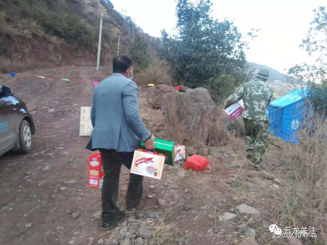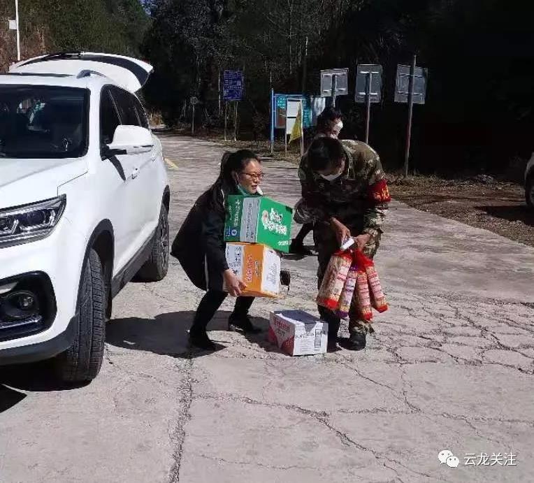2月11日中午,在云龙天池国家级自然保护区森林防火执勤2号点,一张本地牌照轿车来到大门口,值班人员在给驾驶员和乘客测量体温过程中,司机突然打开后备箱往下搬东西,说是给执勤点送来东西。该女士放下饮料、干粮后,名字不说就匆匆驾车离开了。