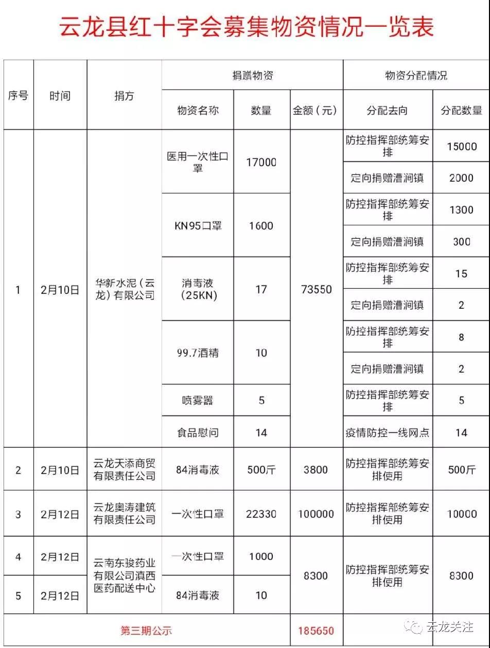 接受爱心企业捐赠价值185650元的物资。接收的捐赠物资已按捐赠方意愿转拨疫情防控指挥部统筹安排使用。明细如下: