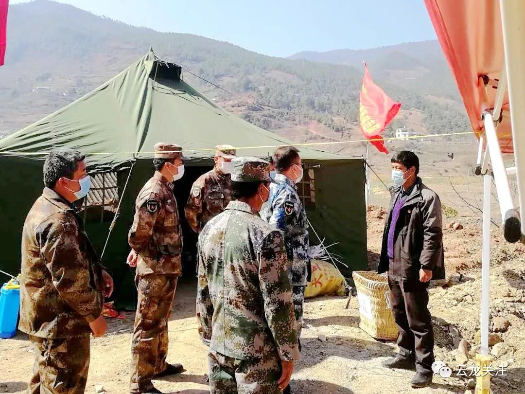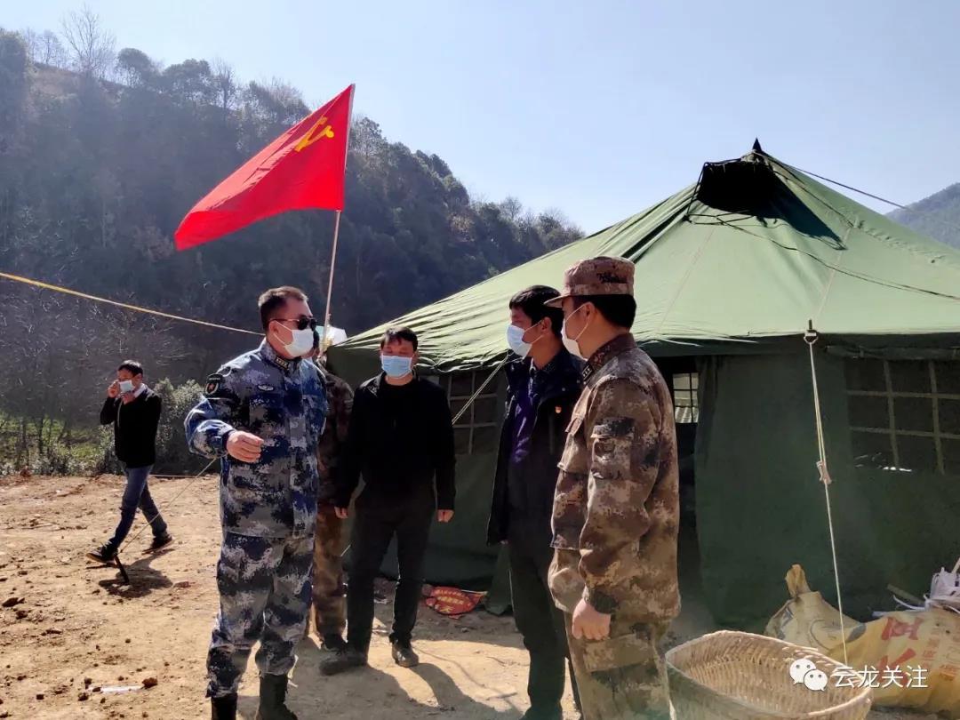 2月21日,大理军分区司令员李为国在县委常委、县人武部政委冷春林,县人武部部长陈长举等领导陪同下到关坪乡检查指导疫情防控工作。