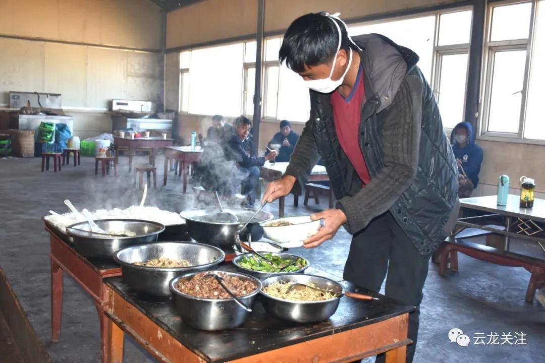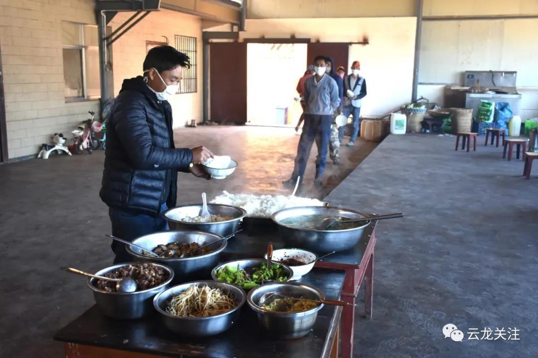 在宝丰乡庄坪村委会,记者也看到每盆饭菜上都放置了一把公勺,就餐人员排好队后按需取饭菜,即取即走,分散用餐。