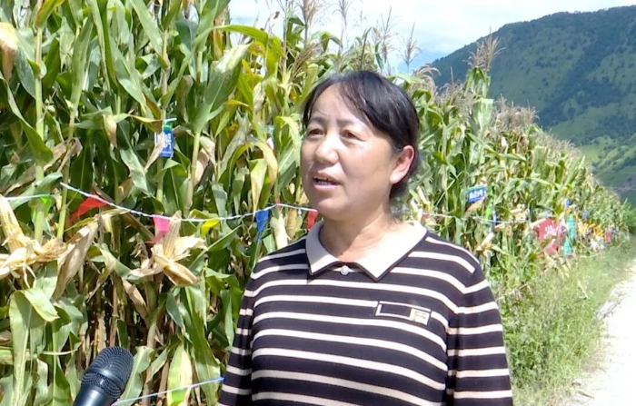 今年是农业局拿下来的包谷种子,技术这些他们也下来指导,比去两年种的要好得多,如果是青贮的话,这个的收成、株高各方面都比较好。去年收到3000多斤,今年能收得到4000多斤,包谷杆也能青贮喂牛,种这个就比较好。