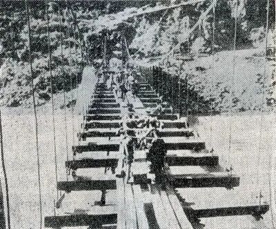1940年11月4日,昌淦桥建成通车,全长135米,荷载H—10级,专门用于通行军车,但日军的轰炸就来了。我在《云龙县志》中查到一组惊心动魄的数据:1940年12月24日中午12时20分,日军9架飞机第五次突袭,投弹百余枚,昌淦桥东端北侧十几根钢索被炸断,加劲钢桁架连桥面一起坠江;1941年1月23日12时10分,敌机再次轰炸,上方4根钢索、下侧2根钢索断裂,东半部桥面坠江,西半部斜悬在半空。日军甚至在电台里狂妄宣称:“滇缅公路已断,三个月内无通车希望。”