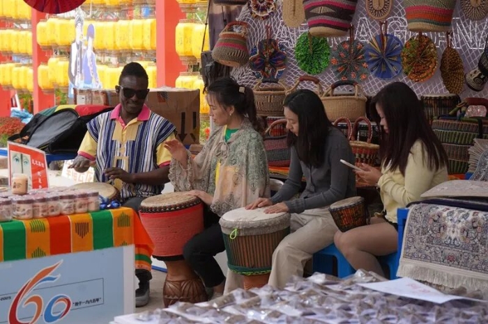 不同于亚口户森,来自非洲加纳的摩西今年第一次来到云龙“八三”街。虽然初来乍到,他却凭借热情开朗的性格迅速融入了这里。闲暇时,他就热情地教路人打非洲手鼓,轻快的节奏总能为摊位吸引人流。据他介绍,自己是被朋友推荐过来的。他说:“我的朋友说这个地方人挺好,人也多,好也好玩,吃的也好吃,我听了很感兴趣,所以过来试一下。”