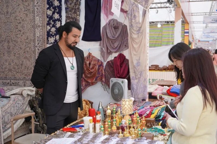 与摩西相邻的摊位,来自阿富汗的荣曜带来了一片浓郁的异域风情。他的香水、丝巾、地毯、松子等特色商品,吸引了很多顾客,大家口耳相传,让他的摊位很受欢迎。他喜悦地分享着佳绩:“我的生意非常好,两天的时间里我的货已经销了好几件了,可能在第一个星期就基本上可以全部卖光。”