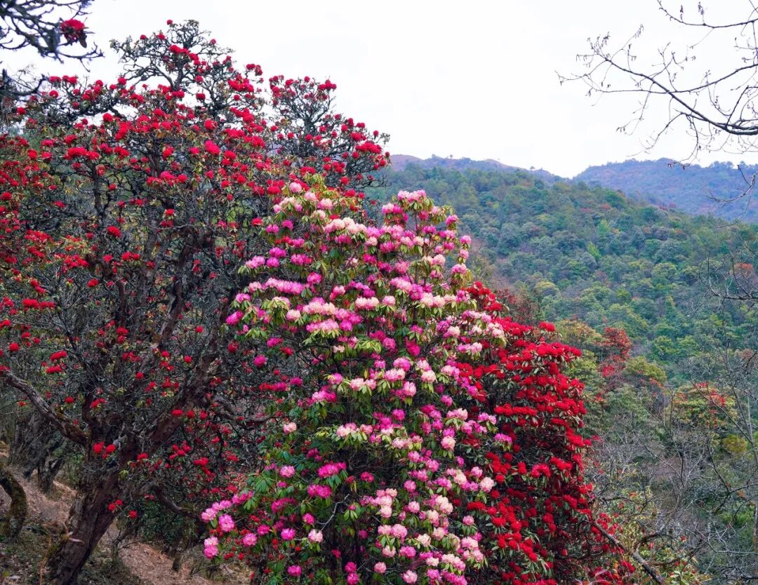 阳春三月,春暖花开,正是踏春赏花好时节。云南云龙天池保护区内山茶花争相绽放,映红山间,美不胜收。